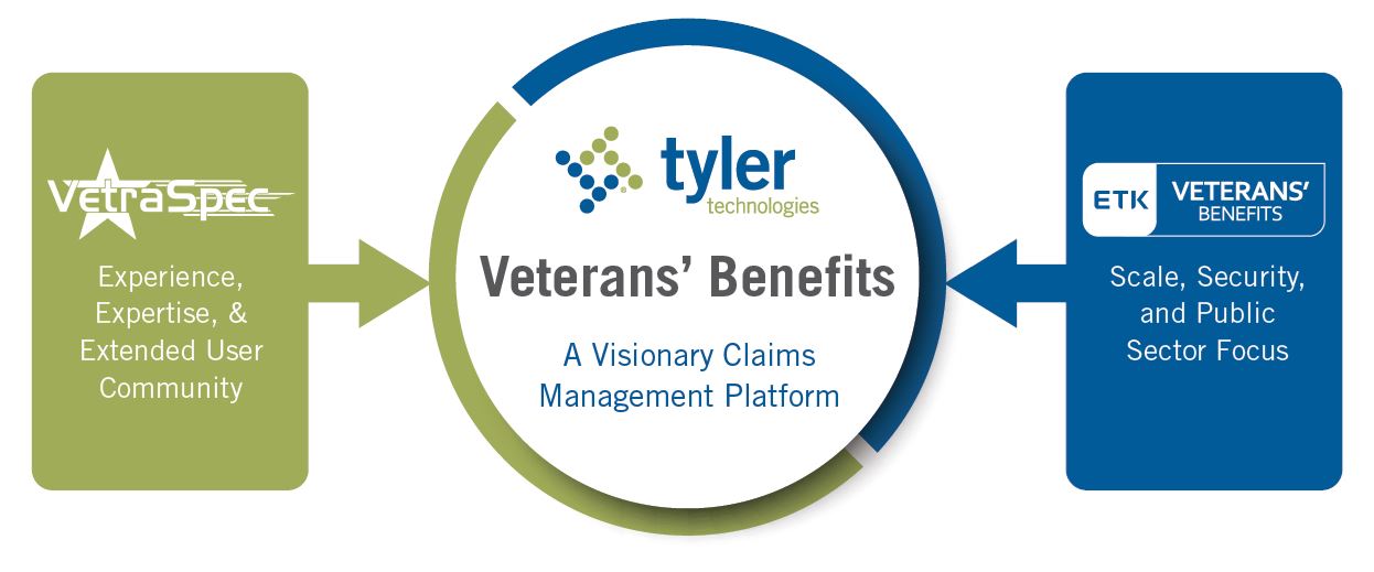 While not all veterans file claims with the Veterans Administration once they have left service, Tyler Technologies’ solutions have processed VA claims for almost half of the nearly 19 million American veterans living today. In fact, 30+ states, over 300+ counties, and more than 4,500 Veteran Service Officers (VSOs) rely on Tyler software to process veterans benefits claims daily. No other provider of veterans’ benefits software comes close to Tyler’s scale, experience, and expertise delivering the exact functionality VSOs need.